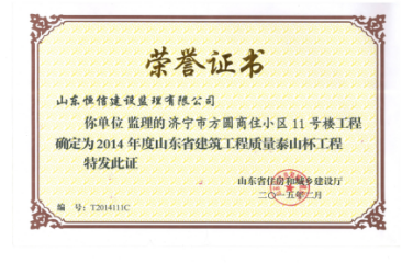 濟(jì)寧市方園商住小區(qū)11號(hào)樓工程-榮獲“泰山杯”