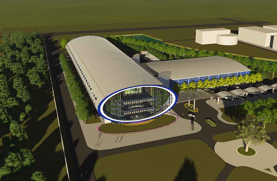 工程規(guī)模: A、B區(qū)為3層砼結(jié)構(gòu)+拱形輕鋼屋蓋,跨度為39.2m;C區(qū)為單層雙跨雙坡門式鋼架結(jié)構(gòu),跨度為26m。